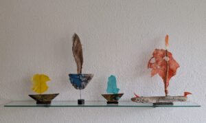 Mit meinem Strandgut bin ich im „kreativen Fluss“. Die Natur beschenkt mich und Flügelwesen entstehen.